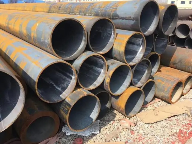 2.冷拔(轧)亳州大口径厚壁无缝钢管:圆管料→加热→破孔→打头→退火→酸洗→抹油(镀铜)→多道次冷拔(冷扎)→坯管→热处理→矫直→水压试验(探伤)→标识→进库。冷拔(轧)无缝钢管的冷轧方式较热扎它们生产流程前三步基本一致。不同之处从第四个流程逐渐,圆管料经打空后,要开头,退火。退火后进行酸洗。酸洗后,抹油。随后紧接着是经过多道次冷拔(冷扎),专门的热处理。热处理后,就要被校直。钢管经校直后进行内部探伤。钢管质检后还要通过严格手工选择。钢管质检后,用漆料喷上编号、规格、生产日期等。并由吊车吊入仓库里。