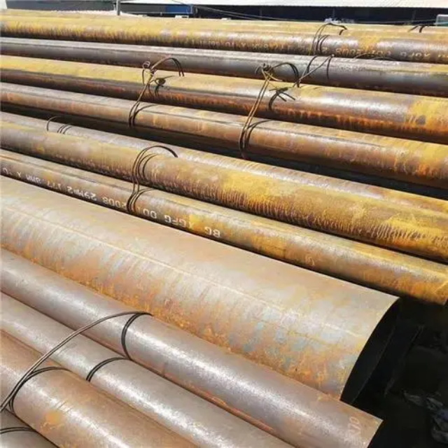 亳州gb3087无缝钢管要用钢锭或实芯管料经破孔制成毛管,随后经热扎、冷轧或冷拨制成。亳州gb3087无缝钢管在中国钢管业中具备重要的位置。据不完全统计,我国目前无缝管生产公司约240多家,无缝管机组约250多套,年产能力约450多万吨。从规格看,亳州gb3087无缝钢管的原料是圆管坯,圆管胚要经过切割机的切割制作成长短约为1米胚料,并经输送带送至溶炉内加温。钢坯被送进溶炉内加温,温度约为1200℃。燃料为氢气或乙炔。炉内温控是关键性的难题.圆管坯出炉后要经过压力穿孔机开展穿空。一般较常见的穿孔机是锥形辊穿孔机,这类穿孔机生产效率高,产品品质好,破孔扩径量多,可穿多种钢种。破孔后,圆管坯就先后被三辊斜轧、连轧或挤压。挤压后应脱管定径。定径机根据锥形钻头高速运转入钢胚打孔,产生钢管。钢管内径由定径机钻头的直径长短来决定。钢管经定径后,进入冷却塔中,根据喷水冷却,钢管经冷后,就要被校直。钢管经校直后由输送带送往金属探伤机(或压力试验)进行内部探伤。若钢管内部有裂痕,气泡等问题,将被检测出。钢管质检后还要通过严格手工选择。钢管质检后,用漆料喷上编号、规格、生产日期等。并由吊车吊入仓库里。